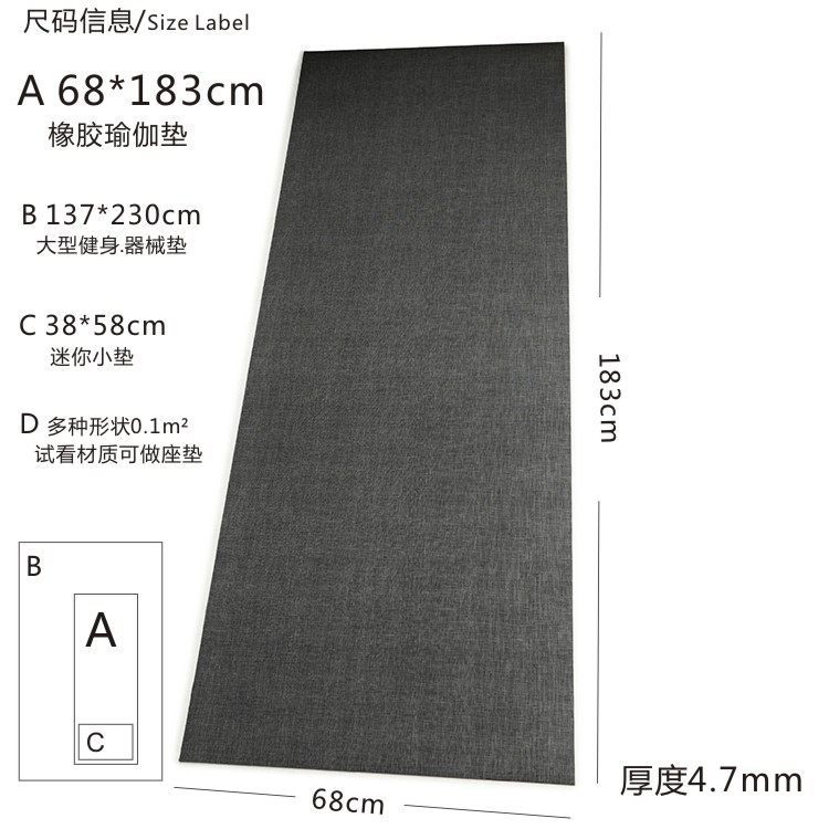 | A款 68cm*183cm橡胶瑜伽垫 | 99/件 |